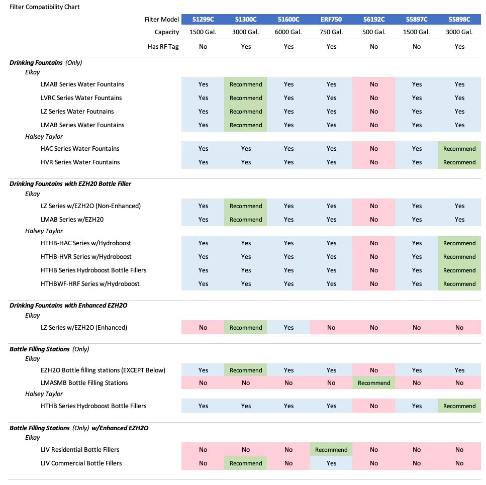 Our Elkay & Halsey Taylor compatibility chart can help you determine which filter you need.