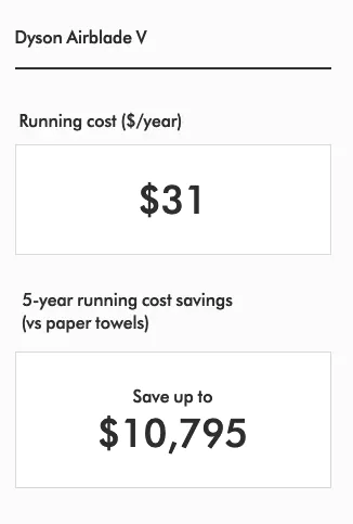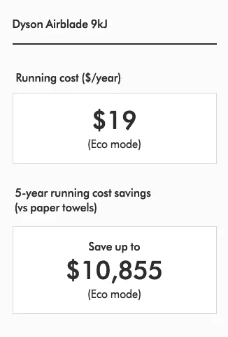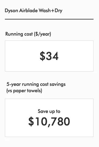 Less waste Up to 78% less expensive to run than other hand dryers. Up to 99% less than single-use paper towels, with up to 83% less CO2, emissions. Creating a better environment in your restrooms and in the world outside. |