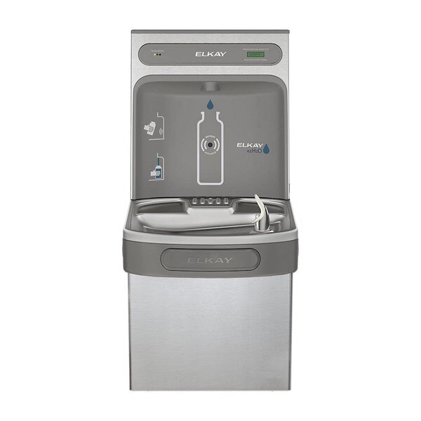 Elkay ezH2O® Bottle Filling Station with Single ADA Cooler, Filtered Refrigerated Stainless. Chilling Capacity of 8.0 GPH (gallons per hour) of 50F drinking water, based on 80F inlet water and 90F ambient, per ASHRAE 18 testing. Features shall include Antimicrobial, Filtered, Green Ticker™, Hands Free, Laminar Flow, Real Drain, Visual Filter Monitor. Furnished with Flexi-Guard ® Safety Bubbler. Electronic Bottle Filler Sensor with Electronic Front and Side Bubbler Pushbar activation. Product shall be Wall Mount (On Wall), for Indoor applications, serving 1 station(s). Unit shall be certified to UL 399 and CAN/CSA C22.2 No. 120. Unit shall be lead-free design which is certified to NSF/ANSI 61 & 372 (lead free) and meets Federal and State low-lead requirements.