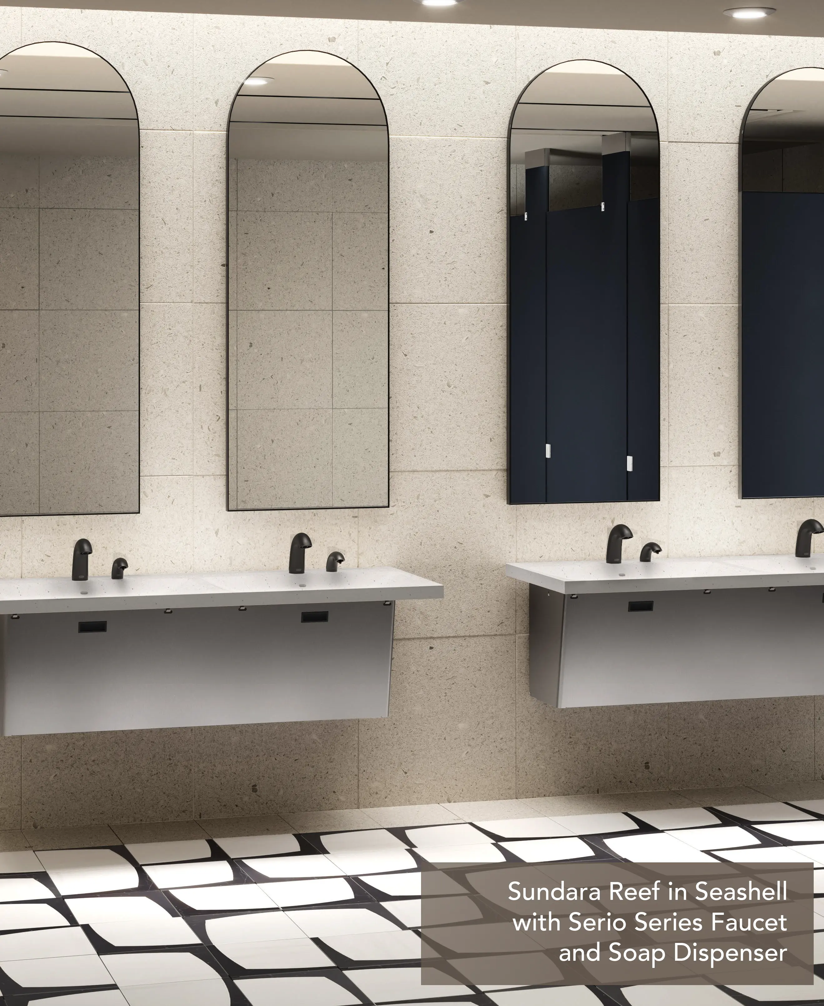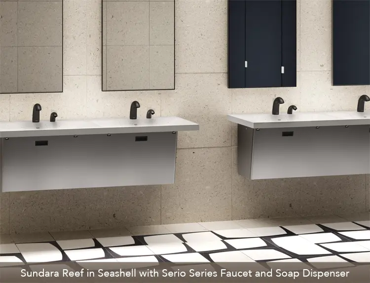 SUNDARA REEF Sundara Reef offers a timeless design for commercial restrooms with a wide opening, gently sweeping basin, low-profile slot drain and a broad rear deck for placing personal items.